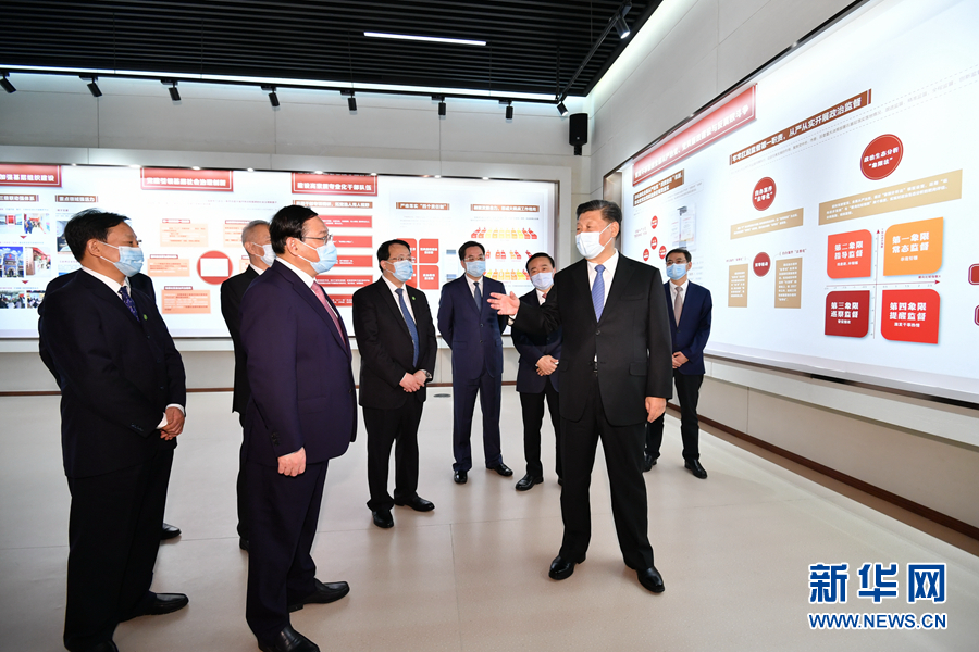 慶祝大會(huì)后,總書記來(lái)到浦東展覽館,參觀“在國(guó)家戰(zhàn)略的引領(lǐng)下——浦東開發(fā)開放30周年主題展”。