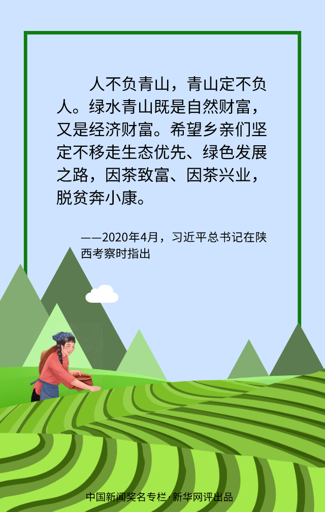 推進(jìn)綠色發(fā)展,讓綠水青山造福人民群眾,不是權(quán)宜之計,而是長久之策,必須咬定青山不放松,風(fēng)雨無阻向前行。面對新冠肺炎疫情沖擊和世界經(jīng)濟(jì)衰退影響,堅定不移打贏脫貧攻堅收官戰(zhàn),要增強生態(tài)文明建設(shè)的戰(zhàn)略定力,向綠色轉(zhuǎn)型要出路、向生態(tài)產(chǎn)業(yè)要動力,通過發(fā)展綠色產(chǎn)業(yè)吸引大量就業(yè),通過發(fā)展休閑旅游釋放無限商機。端好綠水青山“金飯碗”,念活綠色經(jīng)濟(jì)“致富經(jīng)”,幸福生活和可持續(xù)發(fā)展將更有支撐,美麗中國將鋪展開新的畫卷。(文字:馬若虎 海報:滕華)