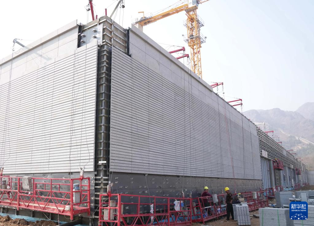 4月2日,工人在山海关中国长城博物馆(暂定名)工地上作业。