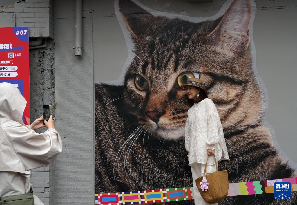 5月7日,游客在BFC外滩金融中心商场参观艺术装置《瑜伽猫教室》。