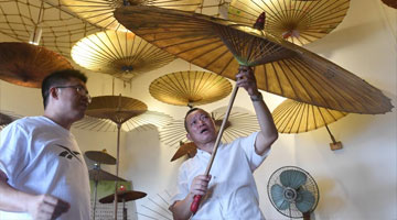 中国国家版本馆杭州分馆展示的文澜阁《四库全书》(5月31日摄)。
