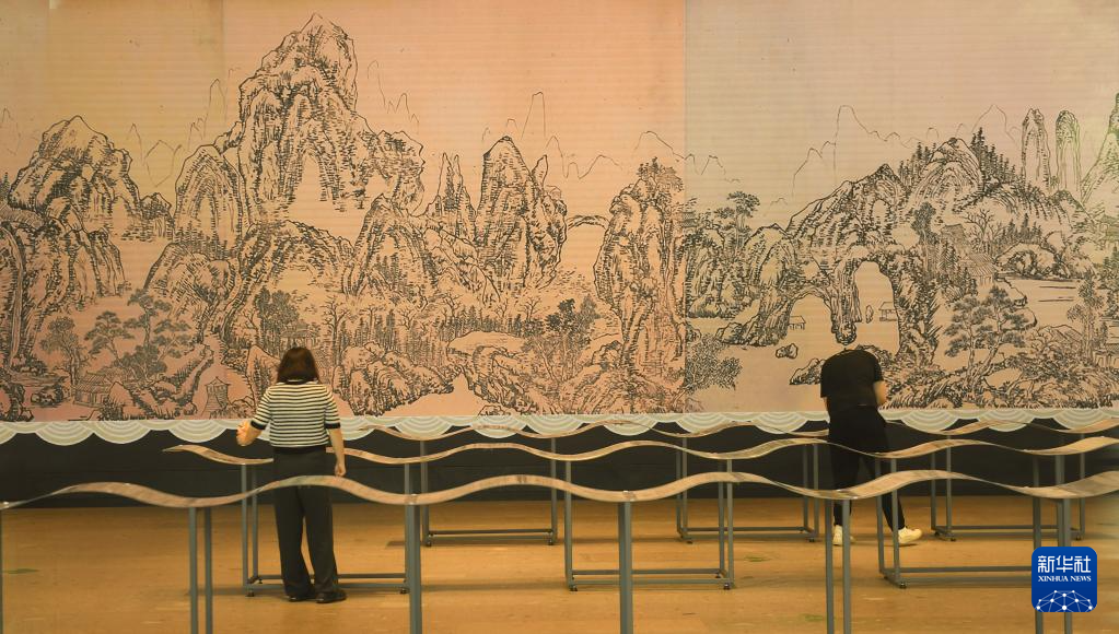 中国国家版本馆杭州分馆展示的“盛世修典——中国历代绘画大系”收录的数字化古画(5月31日摄)。