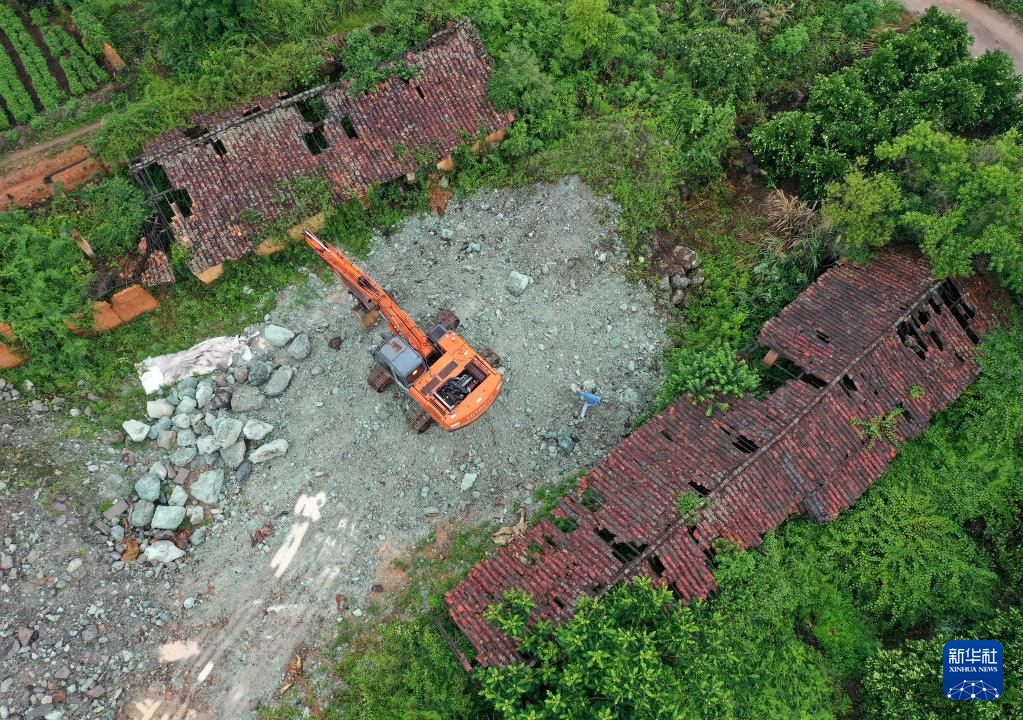 6月8日,刘法星在松阳县一处古龙窑遗址间的矿堆中寻找用来配釉的矿石(无人机照片)。