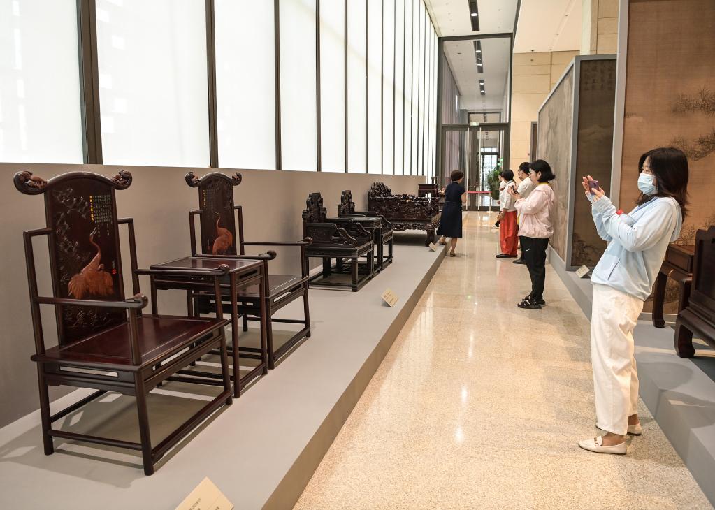 成果展上展出的山东省文物考古研究院藏大汶口文化嵌绿松石象牙雕筒(7月12日摄)。