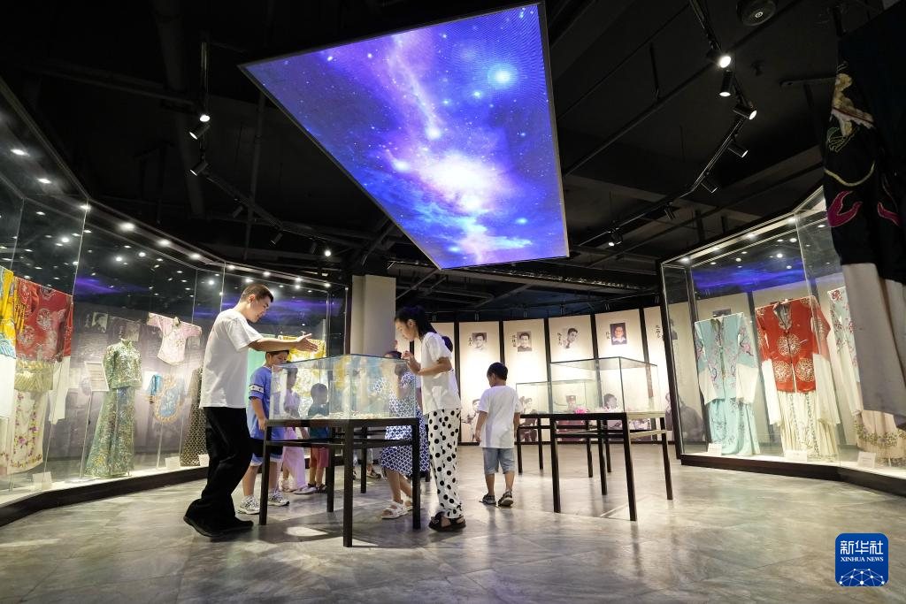 7月21日,孩子们在位于河北省滦州市的中国评剧艺术馆内参观。