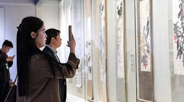 11月12日,观众参观第十一届“大美平谷·水墨周庄”书画展。