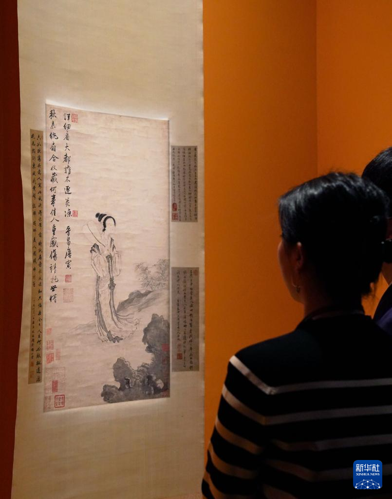 12月10日,观众在参观明代著名画家唐寅的代表作《秋风纨扇图》。