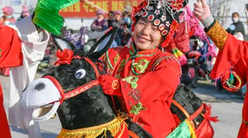 12月26日,市民在河北省群众艺术馆欣赏非遗文创作品。