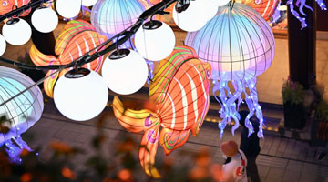 1月21日,游客在豫园商城黄金广场赏灯。