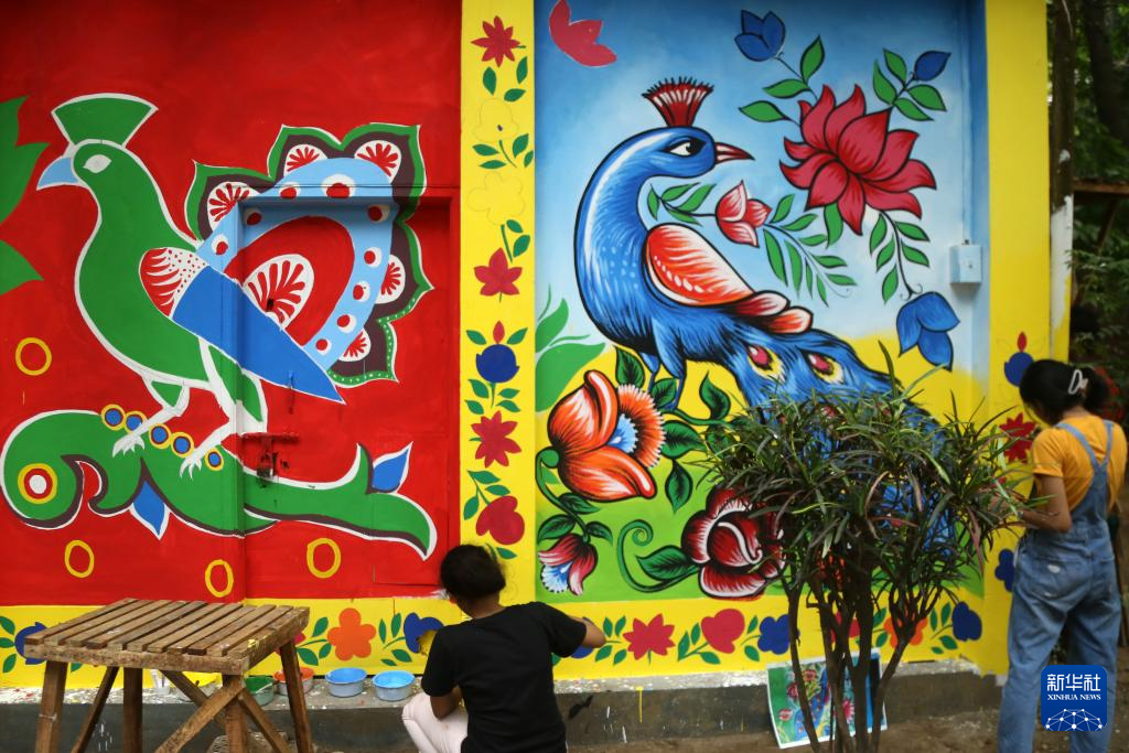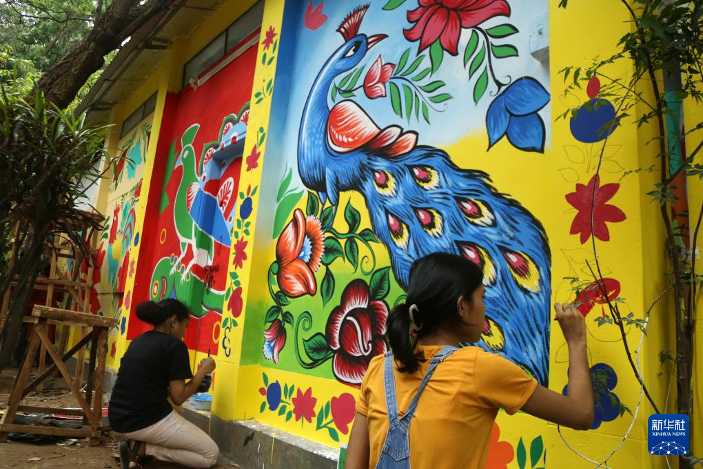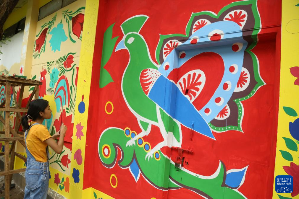 4月7日,在孟加拉国首都达卡,达卡大学的学生在墙壁上进行彩绘,迎接孟历新年。