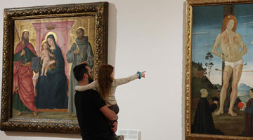 4月11日,工人在山海关中国长城博物馆展厅察看灯光效果。