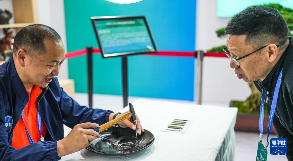 在贵阳举办的第二届全国乡村振兴职业技能大赛上,来自江苏省盐城市的乡村工匠名师陈银付带来了自己的大丰瓷刻作品,吸引了观众的目光。