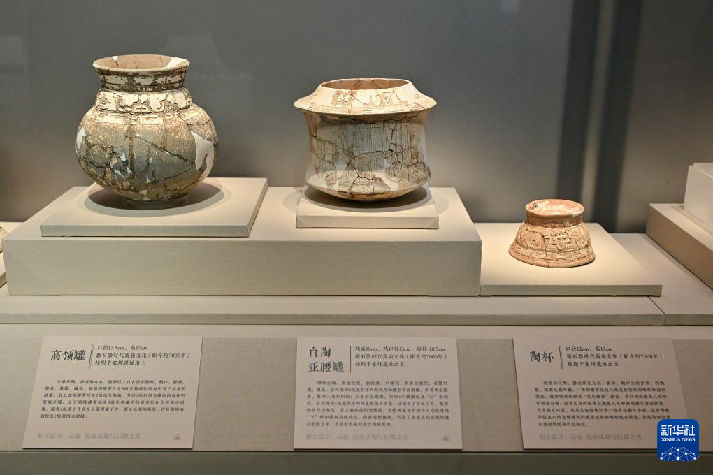 这是1月21日拍摄的展览上展出的陶器。