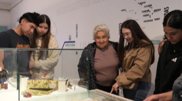 11月23日,一位老人在第二届大运河文化摄影展现场驻足参观。