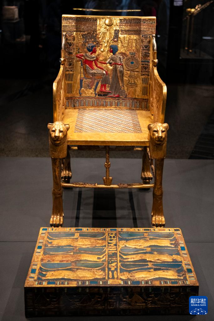 12月20日,游客在埃及吉萨的大埃及博物馆观赏法老图坦卡蒙的神龛。