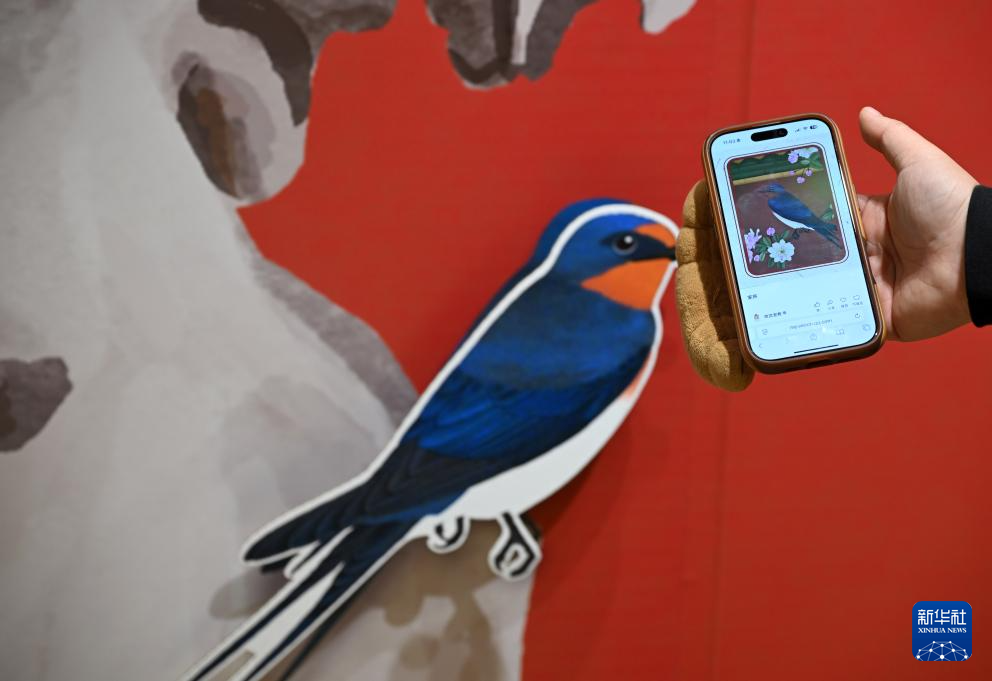 12月30日,观众在“来!听色彩讲故事”故宫教育体验展上用手机参与互动。
