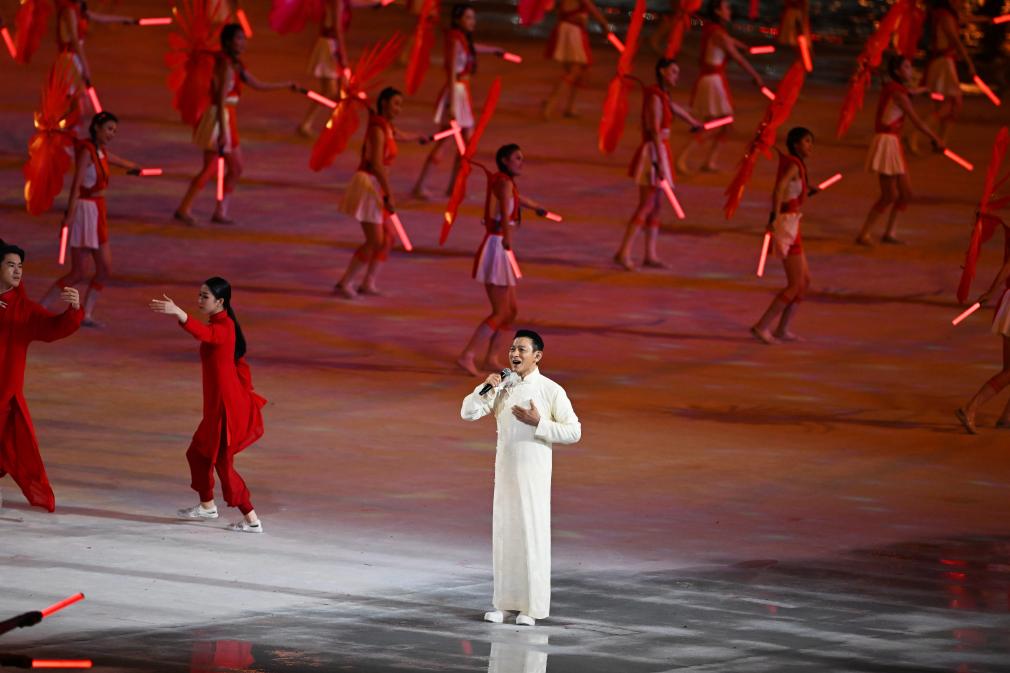 11月9日,第十五届全国运动会开幕式在广东奥林匹克体育中心举行,图为刘德华在开幕式现场演唱《中国人》。新华社记者 杨冠宇 摄