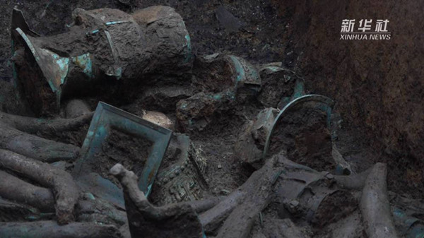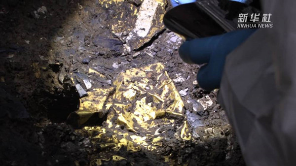 此次新發(fā)現(xiàn)的6個坑狀祭祀遺跡在第1、2號祭祀坑旁。面積僅3.5平方米的5號祭祀坑內(nèi)一片金光閃閃,已清理出多件金器、玉質管珠和象牙飾品等。正在發(fā)掘的3號祭祀坑每天都有新發(fā)現(xiàn),6號祭祀坑確認一具“木匣”,長約1.5米、寬約0.4米,木匣內(nèi)外均涂抹朱砂,目前尚不能確認其用途。