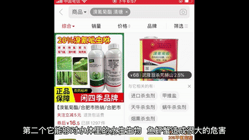 不少電商平臺賣家在銷售“甲氰菊酯”“溴氰菊酯”等產品時,專門標注了“水產養(yǎng)殖戶清塘專用”“迷蝦”“捕蝦”等字樣。但賣家同時又提示:產品對魚蝦有毒,請遠離池塘河流,謹慎使用。