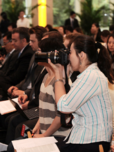 2009年10月8日至10日,世界媒體峰會(huì)在中國(guó)北京舉行,中國(guó)國(guó)家主席胡錦濤出席開幕式并發(fā)表重要演講。這是一次史無(wú)前例的世界傳媒盛會(huì),來(lái)自世界各地的通訊社、報(bào)刊、廣播、電視、網(wǎng)絡(luò)等各種形態(tài)的170多家傳媒機(jī)構(gòu)參加了峰會(huì)。世界媒體峰會(huì)由新華社與新聞集團(tuán)、美聯(lián)社、路透社、俄塔社、共同社、英國(guó)廣播公司、時(shí)代華納特納集團(tuán)、谷歌等九家世界著名媒體機(jī)構(gòu)共同發(fā)起,新華社承辦。 |