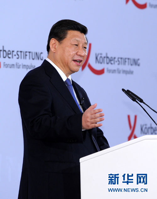 ??? 當(dāng)?shù)貢r(shí)間3月28日下午,國家主席習(xí)近平應(yīng)德國科爾伯基金會邀請,在柏林發(fā)表重要演講。 新華社記者 饒愛民 攝