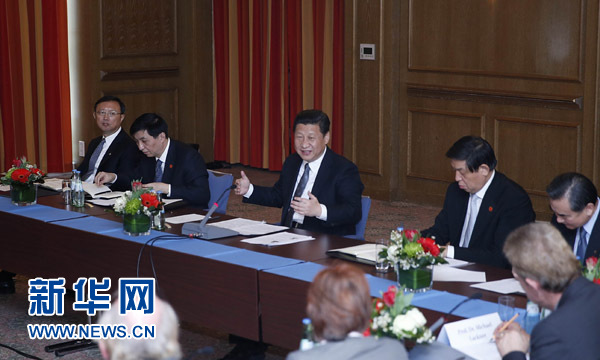 ????新華網(wǎng)柏林3月29日電(記者 徐劍梅 唐志強(qiáng))國家主席習(xí)近平29日在柏林會(huì)見德國漢學(xué)家、孔子學(xué)院教師代表和學(xué)習(xí)漢語的學(xué)生代表,同他們就加強(qiáng)中德語言文化交流進(jìn)行座談。