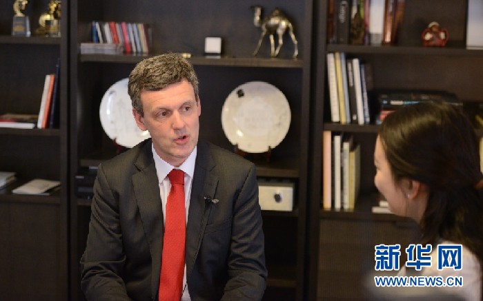 比利時王國駐華大使馬懷宇接受新華網(wǎng)專訪。新華網(wǎng)記者郭小天攝