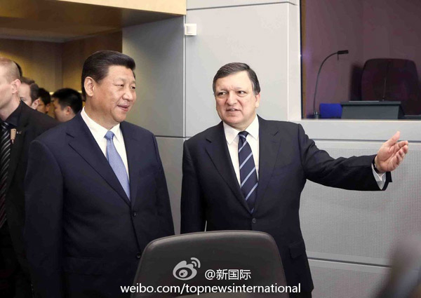 ????新華網(wǎng)北京3月31日電 據(jù)新華社“新國際”微博報道,中國國家主席習(xí)近平31日在會見歐盟委員會主席巴羅佐時說,要繼續(xù)發(fā)揮好貿(mào)易和投資在中歐合作中的主引擎作用。雙方應(yīng)該把互通有無的簡單買賣型貿(mào)易合作,提升為各領(lǐng)域聯(lián)動的復(fù)合型經(jīng)貿(mào)合作,利用互補(bǔ)優(yōu)勢,力爭早日實現(xiàn)雙方年貿(mào)易額1萬億美元的目標(biāo)。