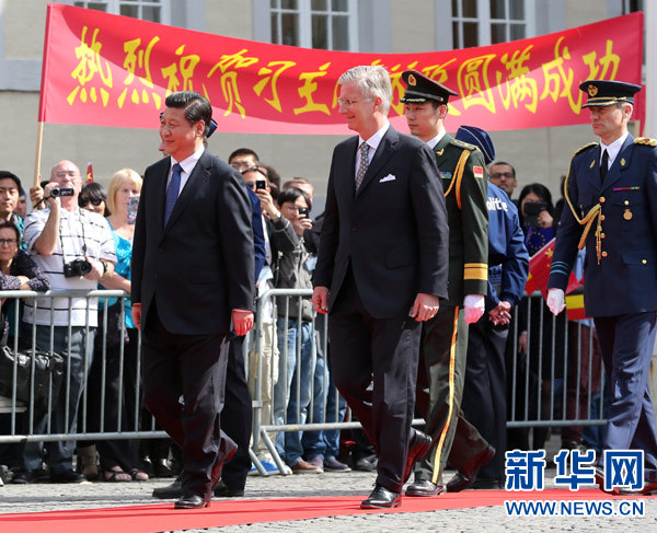 ??? 4月1日,國(guó)家主席習(xí)近平離開比利時(shí)布魯日市啟程回國(guó)。離開前,比利時(shí)國(guó)王菲利普在布魯日廣場(chǎng)為習(xí)近平舉行隆重歡送儀式。新華社記者姚大偉攝