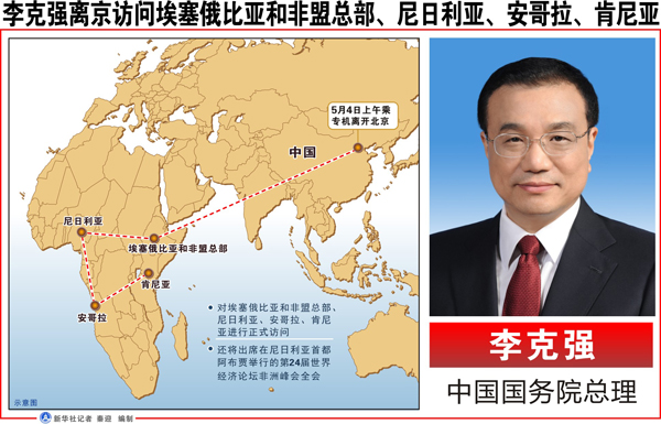李克強(qiáng)離京訪問埃塞俄比亞和非盟總部、尼日利亞、安哥拉、肯尼亞 新華社記者 秦迎 編制