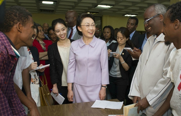 ????新華網(wǎng)北京5月6日電 據(jù)新華社“新國際”微博報道,李克強(qiáng)總理夫人程虹5日在埃塞俄比亞總理夫人羅曼·塔斯法耶的陪同下參觀了亞的斯亞貝巴大學(xué),觀摩漢語授課,與學(xué)生們交流,觀看學(xué)生們的中國文化才藝展示,還捐贈了書籍、計(jì)算機(jī)等物品。程虹說,你們是文化的紐帶,感謝你們對中國人民的情誼。你們對中國文化的熱愛感動了我,也會感動中國人民。