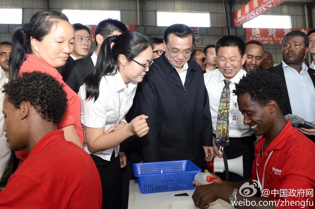 新華網(wǎng)北京5月6日電 據(jù)中國(guó)政府網(wǎng)微博報(bào)道,5日下午,李克強(qiáng)在埃塞總理陪同下參觀東方工業(yè)園。該園由中方投資興建,目前已為當(dāng)?shù)靥峁?000余個(gè)就業(yè)崗位。李克強(qiáng)說(shuō),中國(guó)愿意把可轉(zhuǎn)移的勞動(dòng)密集型產(chǎn)業(yè)優(yōu)先轉(zhuǎn)移到非洲,帶動(dòng)當(dāng)?shù)鼐蜆I(yè),促進(jìn)發(fā)展,增強(qiáng)非洲自我發(fā)展能力,造福雙方人民。