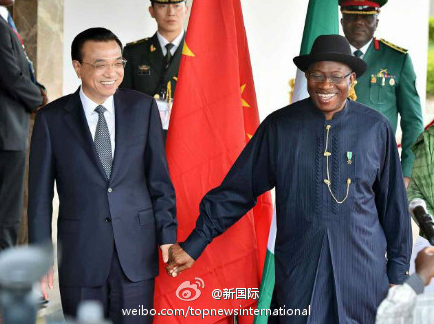 ????新華網(wǎng)北京5月7日電 據(jù)新華社“新國際”微博報道,李克強總理7日與尼日利亞總統(tǒng)喬納森舉行會談。喬納森說:尼日利亞不久前遭受恐怖主義襲擊,安全形勢嚴峻!絕大多數(shù)國家領(lǐng)導人不愿意這個時候訪問尼日利亞,感謝您這次如期到訪,展現(xiàn)了中國是尼日利亞真正的朋友,患難見真情。