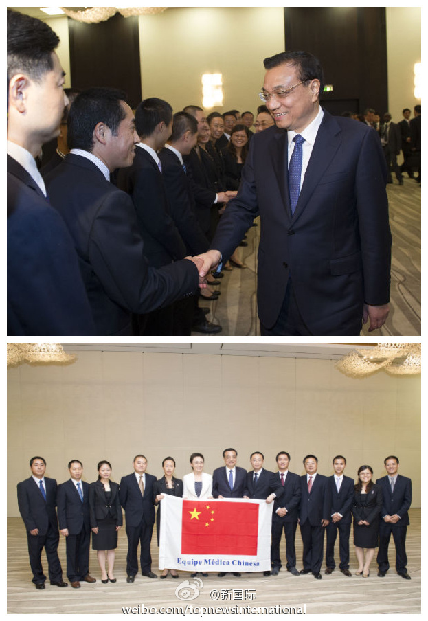 ??? 新華網(wǎng)北京5月9日電 據(jù)新華社“新國際”微博報(bào)道,8日,李克強(qiáng)總理在羅安達(dá)看望援安醫(yī)療隊(duì)?!坝惺裁蠢щy嗎?”李克強(qiáng)與隊(duì)員一一握手,詢問工作情況。得知隊(duì)員最大的困難是語言,李克強(qiáng)鼓勵(lì)大家說,辦法總比困難多,雖然語言溝通有障礙,但可以用心靈感受對(duì)方疾苦,讓對(duì)方切身感受到中國人民的美好情誼。?