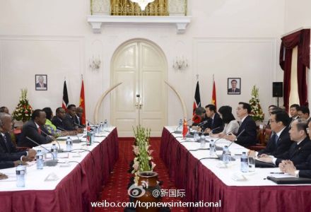 ??? 新華網(wǎng)北京5月10日電 據(jù)新華社“新國(guó)際”微博報(bào)道,李克強(qiáng)總理與肯尼亞總統(tǒng)肯雅塔舉行會(huì)談后,共同見(jiàn)證了雙方多項(xiàng)協(xié)議的簽署。其中中肯航空合作諒解備忘錄、雙方在肯及東非地區(qū)開(kāi)展航空產(chǎn)業(yè)合作的協(xié)議備受矚目。分析認(rèn)為,這標(biāo)志著李克強(qiáng)倡議的中非打造“三大網(wǎng)絡(luò)”中的非洲區(qū)域航空網(wǎng)邁出重要一步。