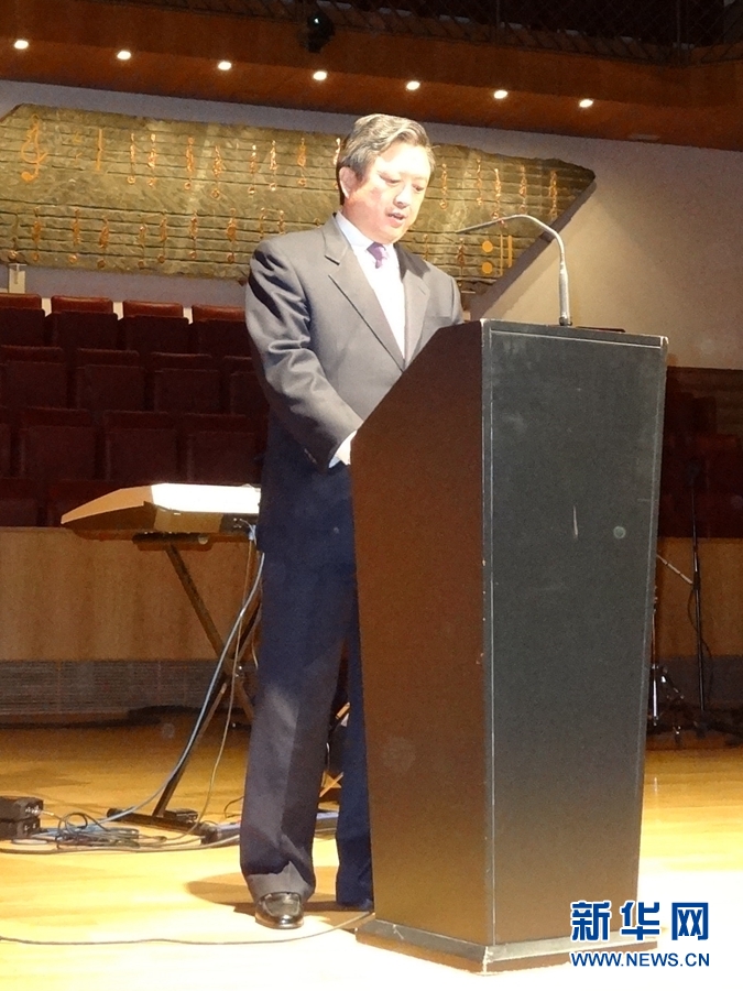 中國駐西班牙大使朱邦造在音樂會(huì)前發(fā)表致辭。新華網(wǎng) 周喆攝
