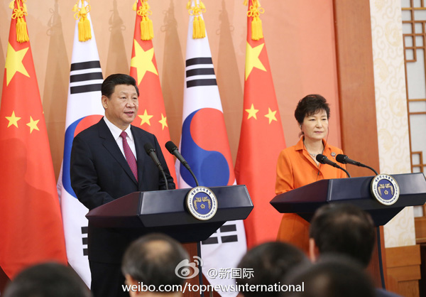 新華網(wǎng)北京7月4日電據(jù)新華社“新國際”微博報(bào)道,習(xí)近平主席3日在同韓國總統(tǒng)樸槿惠會(huì)談后共見記者時(shí)說,我和樸槿惠總統(tǒng)都認(rèn)為,中韓兩國應(yīng)一道努力,成為實(shí)現(xiàn)共同發(fā)展的伙伴、致力地區(qū)和平的伙伴、攜手振興亞洲的伙伴、促進(jìn)世界繁榮的伙伴。