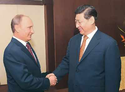 習近平表示,下一步,中俄雙方要繼續(xù)加大相互政治支持,提高合作深度和廣度,更多開展戰(zhàn)略性大項目聯(lián)合研究開發(fā)、聯(lián)合推廣應用、聯(lián)合生產(chǎn)制造,在軍事、安全等領(lǐng)域多采取務實聯(lián)合行動,在人文領(lǐng)域鼓勵和支持聯(lián)合辦學、共同發(fā)展文化。雙方要在國際事務中開展更多共同行動,攜手推動金磚國家合作,提升話語權(quán)和影響力,完善全球治理,推動國際關(guān)系民主化,促進世界和平與發(fā)展。