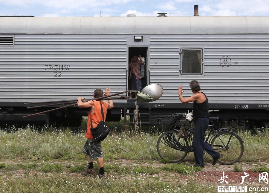 當(dāng)?shù)貢r(shí)間2014年7月20日,烏克蘭頓涅茨克Torez,馬航墜機(jī)遇難乘客遺體被裝上列車?yán)洳剀噹麑⒈贿\(yùn)走。載有部分遺體的火車從距空難現(xiàn)場(chǎng)不遠(yuǎn)的烏克蘭托列茲市出發(fā),前往頓涅茨克市。火車離站前,身處空難現(xiàn)場(chǎng)的歐洲安全與合作組織(歐安組織)代表檢查了運(yùn)載遺體的5節(jié)冷藏車廂。