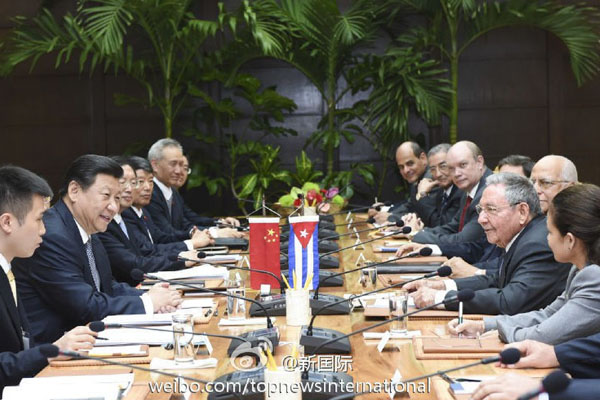 ??? 新華網(wǎng)北京7月23日電 據(jù)新華社“新國際”微博報道,習(xí)近平22日同古巴國務(wù)委員會主席兼部長會議主席勞爾·卡斯特羅會談時,對發(fā)展中古關(guān)系提出3個“堅定不移”:堅定不移深化肝膽相照的友誼,堅定不移開展互利共贏的合作,堅定不移做改革發(fā)展的伙伴。(李學(xué)仁攝)