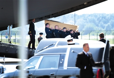 據(jù)美國媒體報道,運輸馬航MH17航班遇難者遺體的軍機(jī)分別來自荷蘭和澳大利亞。它們23日中午從哈爾科夫一座機(jī)場起飛,前往荷蘭艾恩德霍芬空軍基地。23日下午,這兩架軍機(jī)抵達(dá)荷蘭艾恩德霍芬空軍基地,荷蘭國王、王后和首相呂特前往機(jī)場接機(jī),有國民遇難的10個國家派代表出席,并舉行默哀一分鐘儀式。