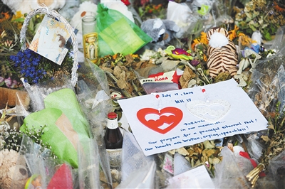 7月29日,阿姆斯特丹機場,乘客悼念馬航MH17遇難者。