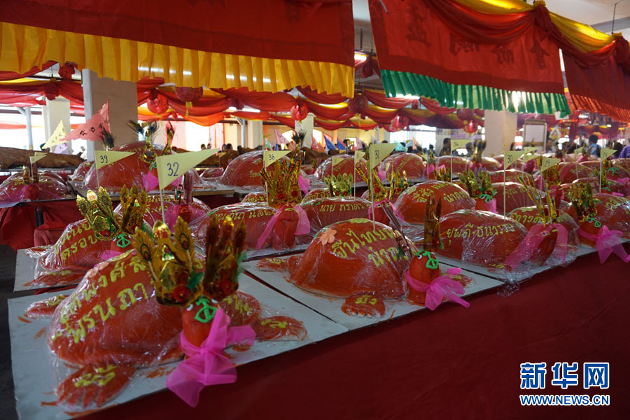 ????8月12日,泰國普吉府舉辦中國傳統(tǒng)的“中元普渡”活動,以普渡孤魂,表達仁愛和孝道思想。該活動在普吉已有150多年的歷史,每逢中國農歷7月,當地華人便會舉行祭祀儀式,用面粉和糖制成大小不一的紅色面團,裝飾成烏龜形狀,既表達了對于祖先的懷念,還傳遞了對于全家人健康長壽的祝福。圖為活動中用于祭祀的烏龜形狀糕點。新華網記者 楊云燕 攝