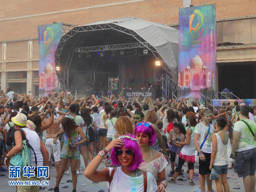 “2014巴塞羅那霍利節(jié)”現(xiàn)場(chǎng)的年輕人 (新華社記者周喆拍攝)