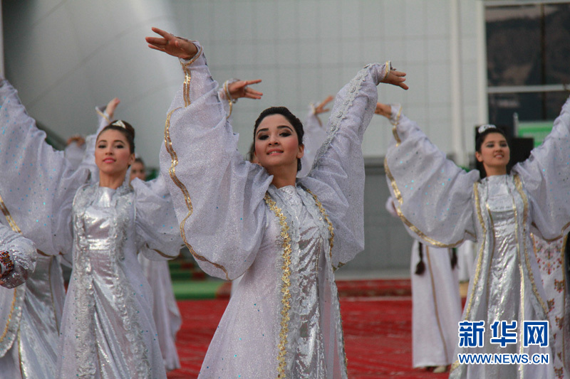 身著節(jié)日盛裝的土庫(kù)曼斯坦美女在跳舞 記者 盧敬利攝