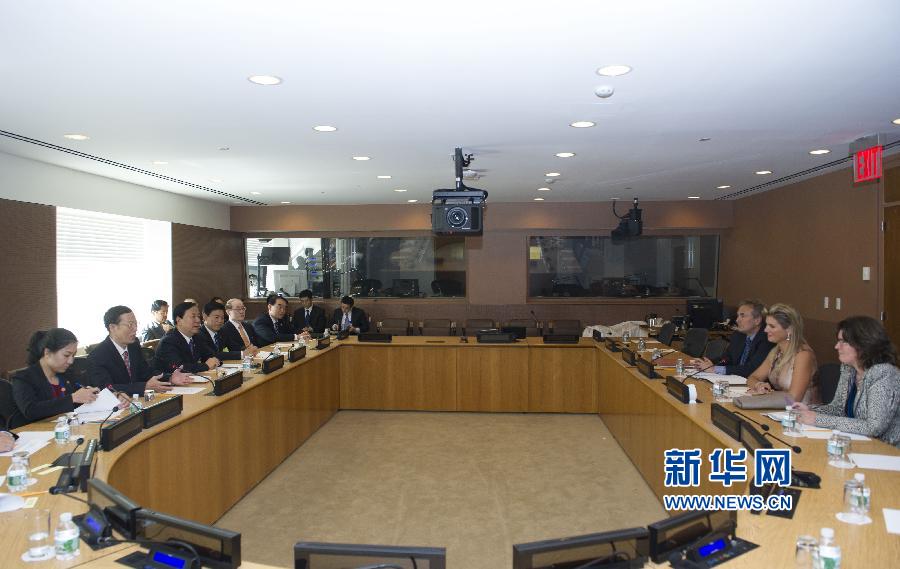 9月23日,出席聯(lián)合國氣候峰會(huì)的國家主席習(xí)近平特使、國務(wù)院副總理張高麗在紐約聯(lián)合國總部會(huì)見荷蘭王后馬克西瑪。 新華社記者 王曄 攝