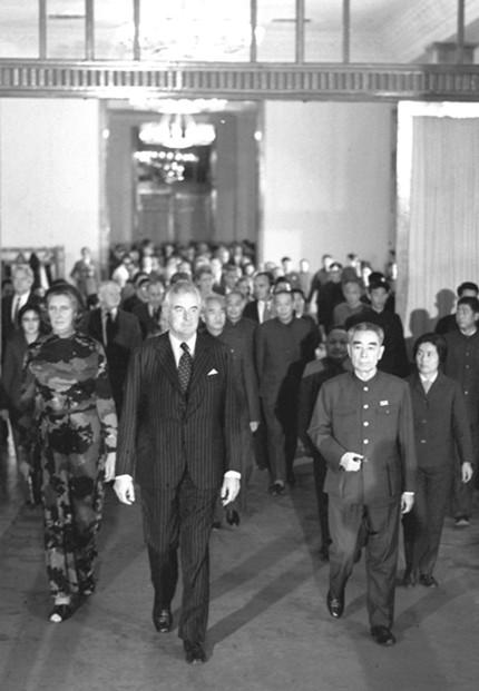 ????惠特拉姆被澳大利亞人譽為“澳中建交之父”。幾乎與基辛格博士秘密訪華同時,惠特拉姆1971年7月率澳大利亞工黨代表團訪華?;萏乩反文贲A得選舉并出任澳大利亞總理后,立即推動了澳大利亞與新中國正式建交,使澳大利亞成為較早與新中國建交的西方國家之一。