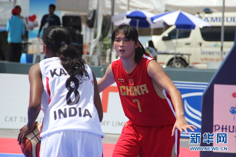 ??? 11月16日,中國(guó)沙灘籃球運(yùn)動(dòng)員黃銀婷(右)在比賽中。中國(guó)體育代表團(tuán)16日在泰國(guó)普吉舉行的第四屆亞洲沙灘運(yùn)動(dòng)會(huì)上勇奪2枚金牌和2枚銅牌。當(dāng)天比賽全部結(jié)束時(shí),中國(guó)隊(duì)以3金2銀5銅的成績(jī)暫列獎(jiǎng)牌榜第五。新華社發(fā)(塔納攝)