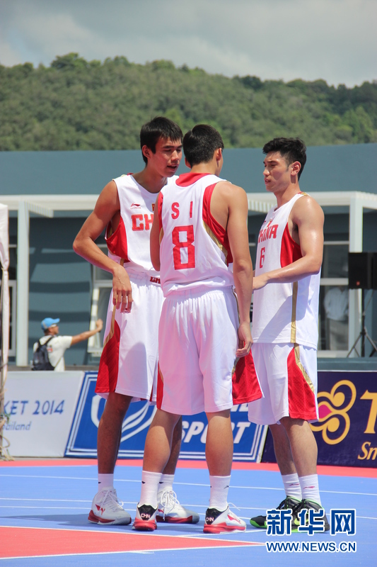 ??? 11月16日,中國沙灘籃球運(yùn)動員劉桂均(左)、司坤(中)、劉洺宇(右)在比賽中場。中國體育代表團(tuán)16日在泰國普吉舉行的第四屆亞洲沙灘運(yùn)動會上勇奪2枚金牌和2枚銅牌。當(dāng)天比賽全部結(jié)束時(shí),中國隊(duì)以3金2銀5銅的成績暫列獎牌榜第五。新華社發(fā)(塔納攝)