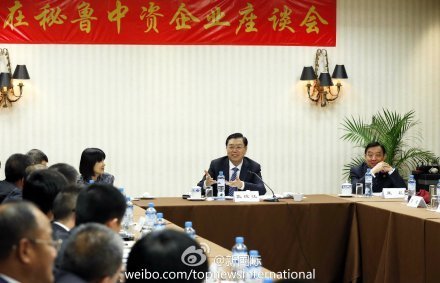 ????新華網(wǎng)北京11月23日電 據(jù)新華社“新華國(guó)際”客戶端報(bào)道,全國(guó)人大常委會(huì)委員長(zhǎng)張德江22日在利馬與20家在秘魯中資企業(yè)代表座談交流。
